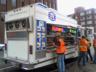Catering truck. Knows the time the construction workers take breaks.Catering Truck